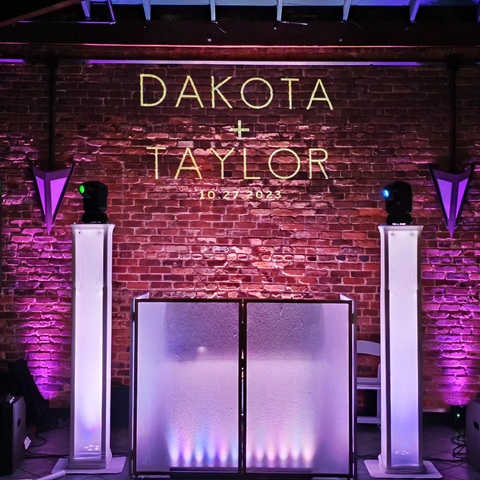 Add a unique and elegant touch to your wedding with CM Music Factory's custom monogram services. Our personalized monograms are beautifully projected onto your dance floor, walls, or ceiling, creating a sophisticated ambiance that perfectly highlights your special day. Whether you envision a classic or modern design, our monograms are tailored to reflect your style and love story, ensuring a truly memorable experience for you and your guests.